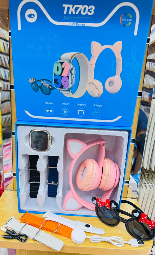 ساعت هوشمند مدل TK 703 به همراه هدفون بلوتوثی و عینک دخترانه