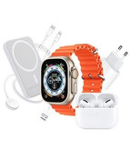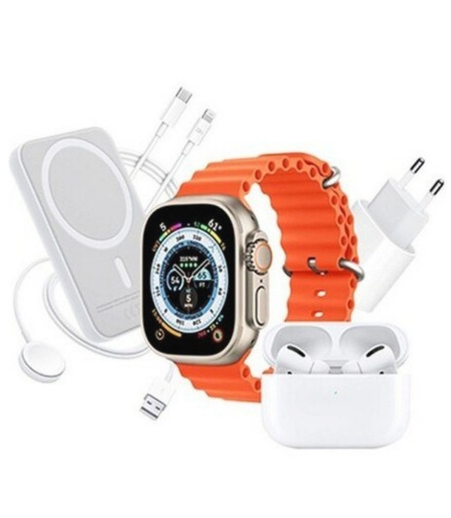 پک ساعت هوشمند X8 PLUS UINQE COMBINATION همراه با موبایل و ایرپاد و پاور بانک دارای شارژر وایرلس و شارژر و کابل