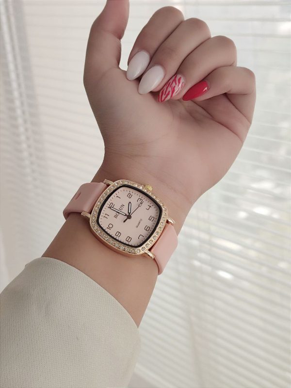 ساعت دخترانه بولون دور نگین بند سیلیکونی