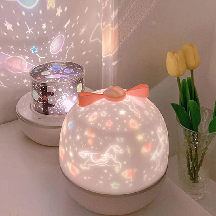 چراغ خواب کودک موزیکال مدل dream wish شبی رویایی و پر از آرامش را برای فرزندانتان ایجاد می کند. این چراغ خواب دارای قابلیت پخش موسیقی (مشابه جعبه موسیقی) است و علاوه بر آن دارای دو حالت نوری آفتابی و مهتابی بوده که شما می توانید بر اساس علاقه خود آن را انتخاب و حتی میزان نوردهی آن را نیز تنظیم نمایید. این چراغ خواب بدلیل نوردهی جذاب و قدرتمندش به سادگی بر روی دیوار و سقف اتاق خواب فرزندتان تابیده شده و محیط اتاق را برای او رویایی و دلنشین می کند. این چراغ خواب چند نوار تصویری دیگر دارد که می توانید آن ها را درون چراغ قرار داده و جایگزین یکدیگر نمایید و تصاویر منتشر شده روی سقف و دیوار اتاق را تغییر دهید. این چراغ خواب توسط کابل شارژ میکرو یو اس بی داخل جعبه شارژ می شود.